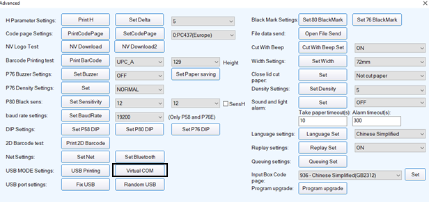Step 8. Click on Virtual COM to change the printer from USB Mode to Virtual COM Mode. Printer will make a beep sound to confirm if the mode is successfully changed.