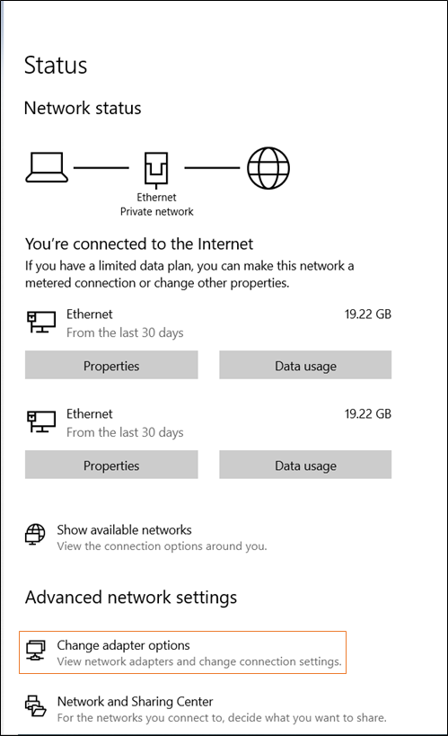 Then Select Network & Internet Settings option & double Click on Change Adapter options.