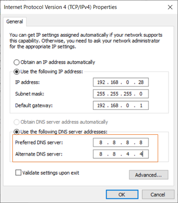 Now write 8.8.8.8 in Preferred DNS server & 8.8.4.4 in alternate DNS server.